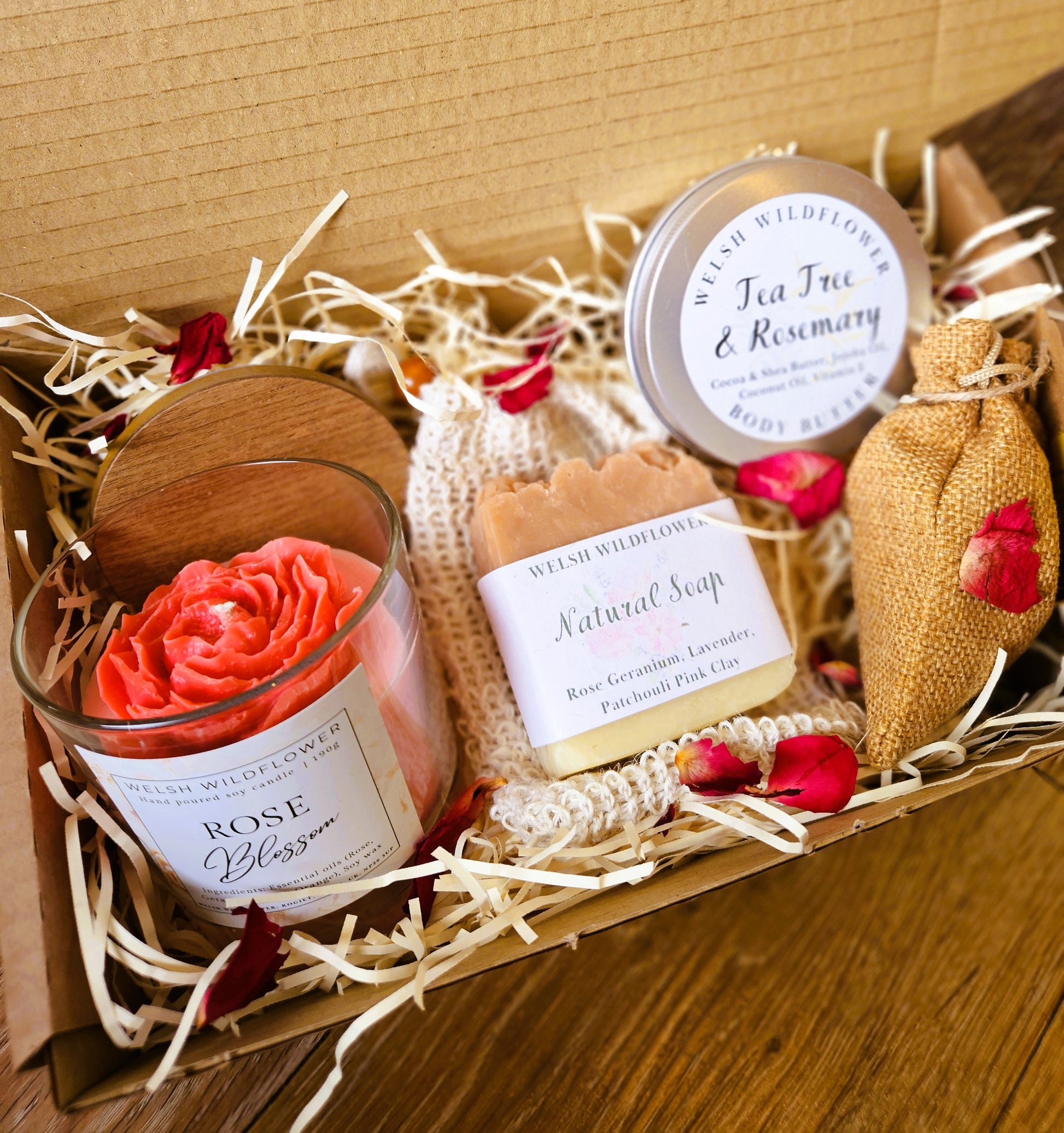 A beautiful gift hamper, bursting with essential oils infused aromatherapy products to treat yourself or a loved one with nature inspired goodies!